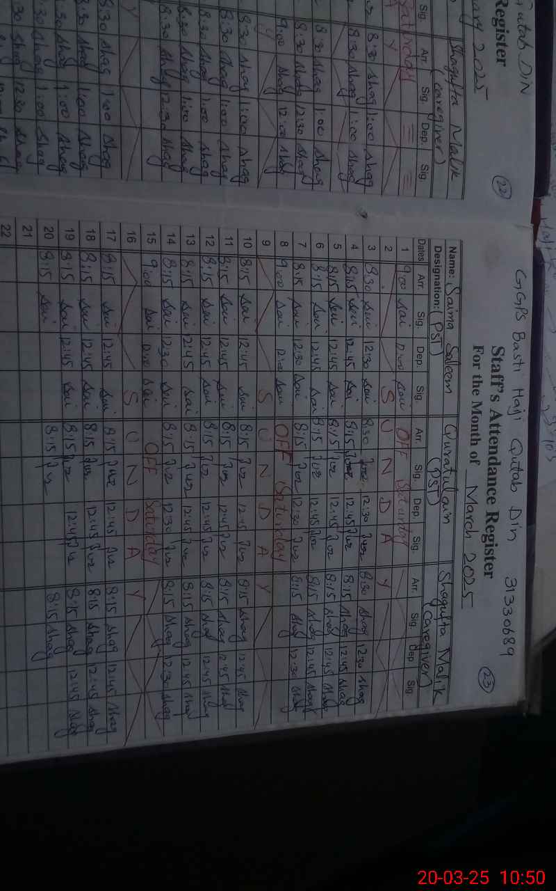 | CNIC | Full Name | Designation | R/C | Absence During Last Calender Month |