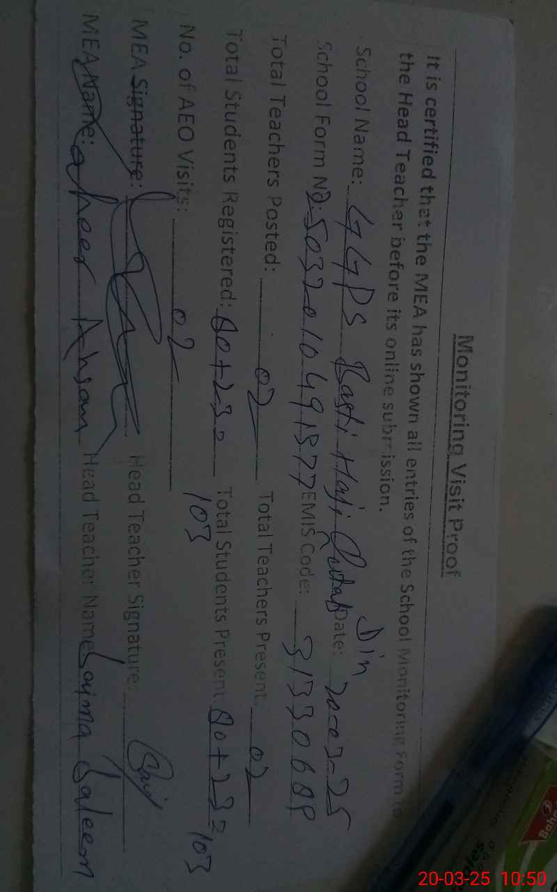 | EMIS Code: 31330689 | Name of School: GGPS BASTI HAJI QUTAB DIN | |||