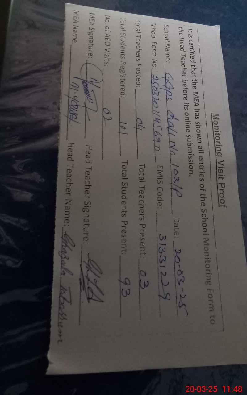 | EMIS Code: 31331229 | Name of School: GGPS CHAK NO. 103/P | |||