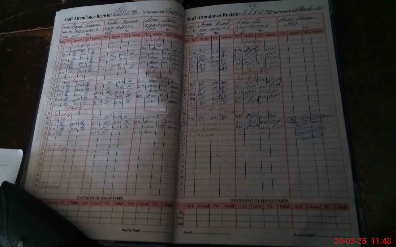 | CNIC | Full Name | Designation | R/C | Absence During Last Calender Month |
