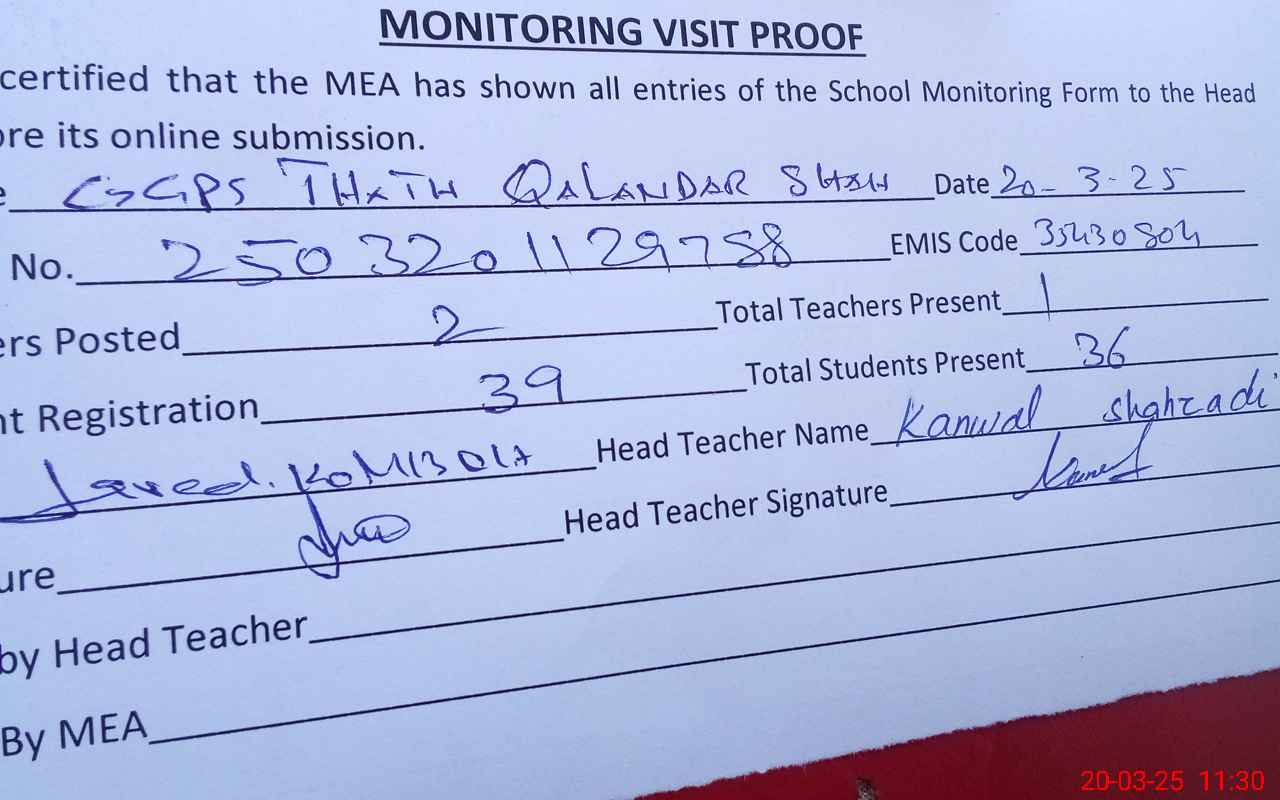 | EMIS Code: 35430804 | Name of School: GGPS THATHA QALANDAR SHAH | |||