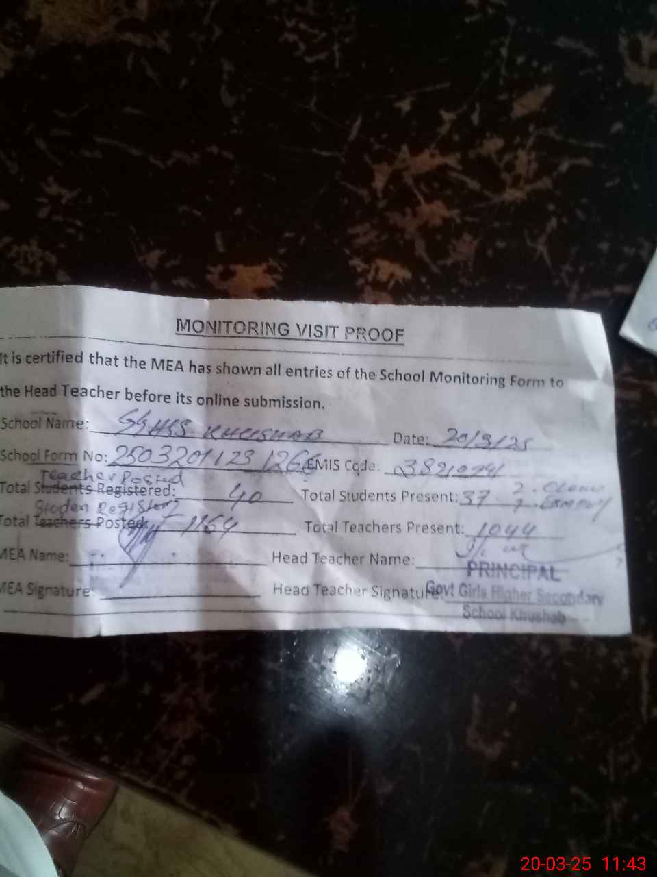 | EMIS Code: 38210941 | Name of School: GGHSS KHUSHAB GEROTE ROAD | |||