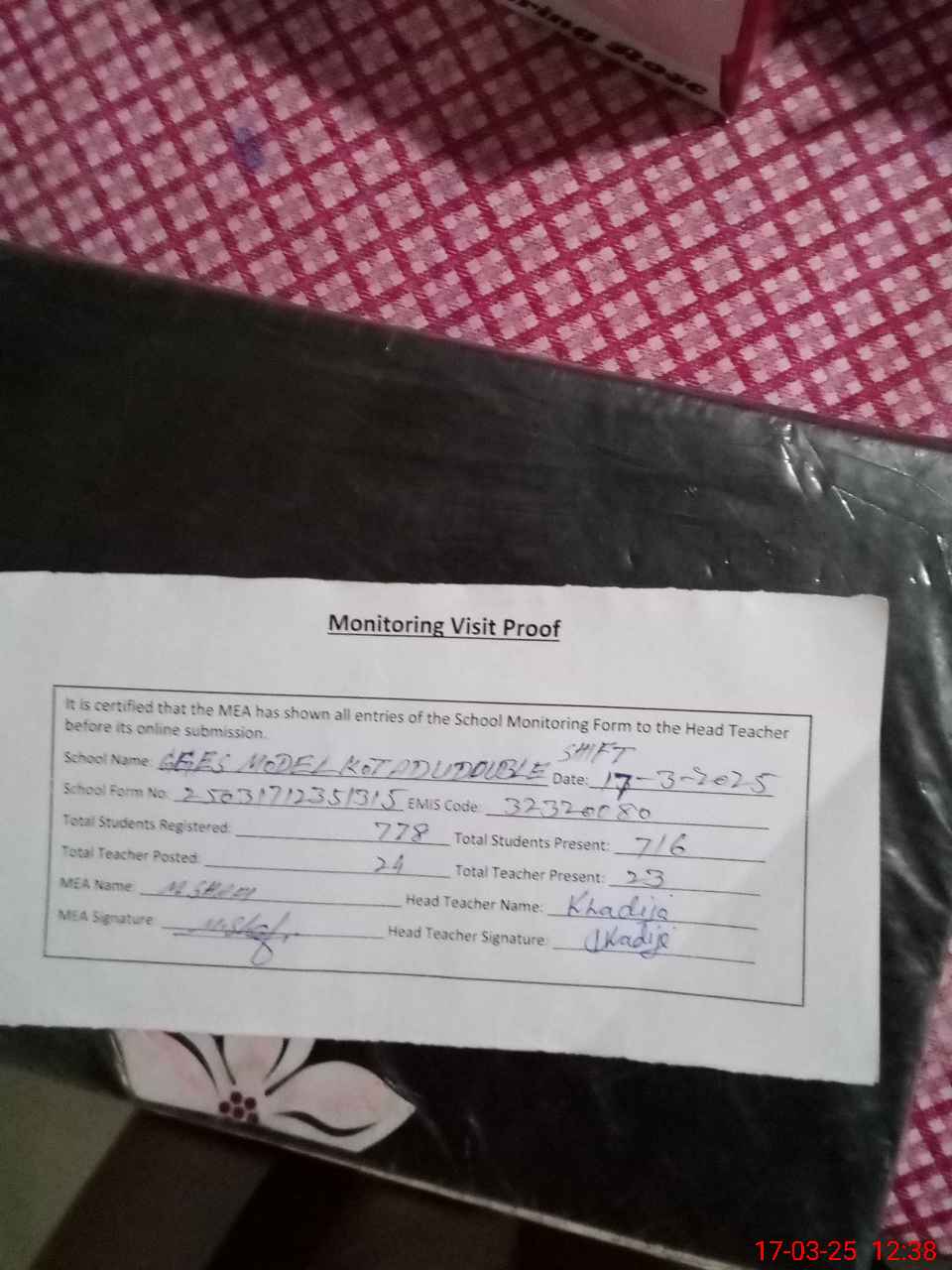 | EMIS Code: 32320080 | Name of School: GGES MODEL KOT ADU DOUBLE SHIFT | |||