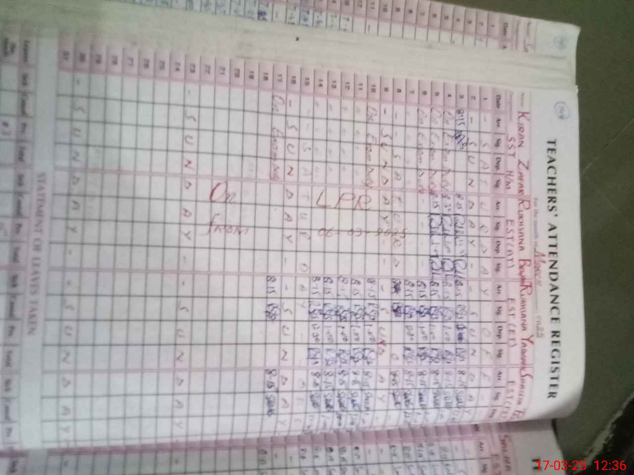 | 32**** | Ri**** Mu**** | 3 | 1 | 0 | 0 | 0 | 0 | 0 | 0 | 0 | 0 | 0 | Exam Duty |