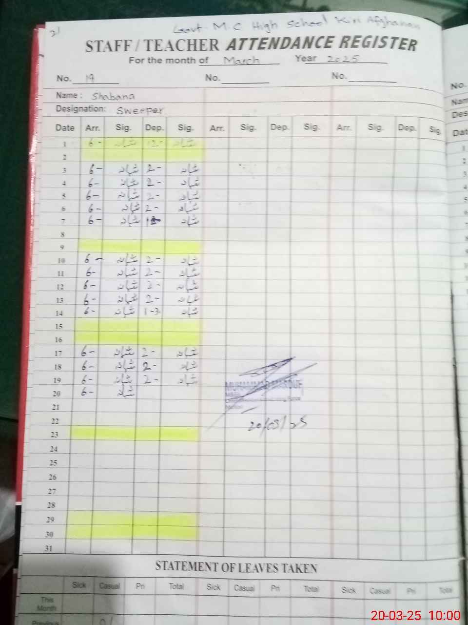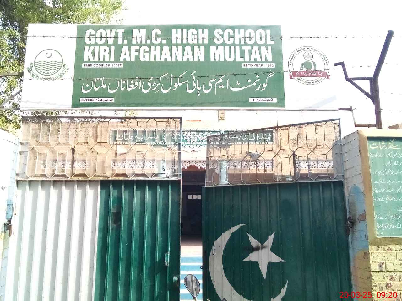 | EMIS Code: 36110067 | Name of School: GHS MC KIRRI AFGHANAN MULTAN | |||