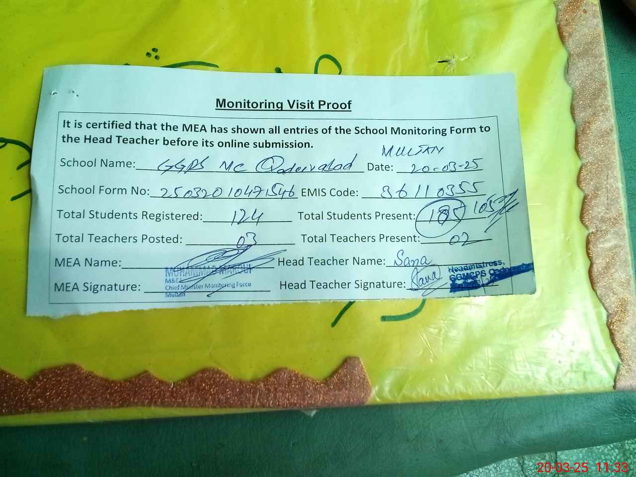 | EMIS Code: 36110355 | Name of School: GGPS MC QADEER ABAD MULTAN | |||