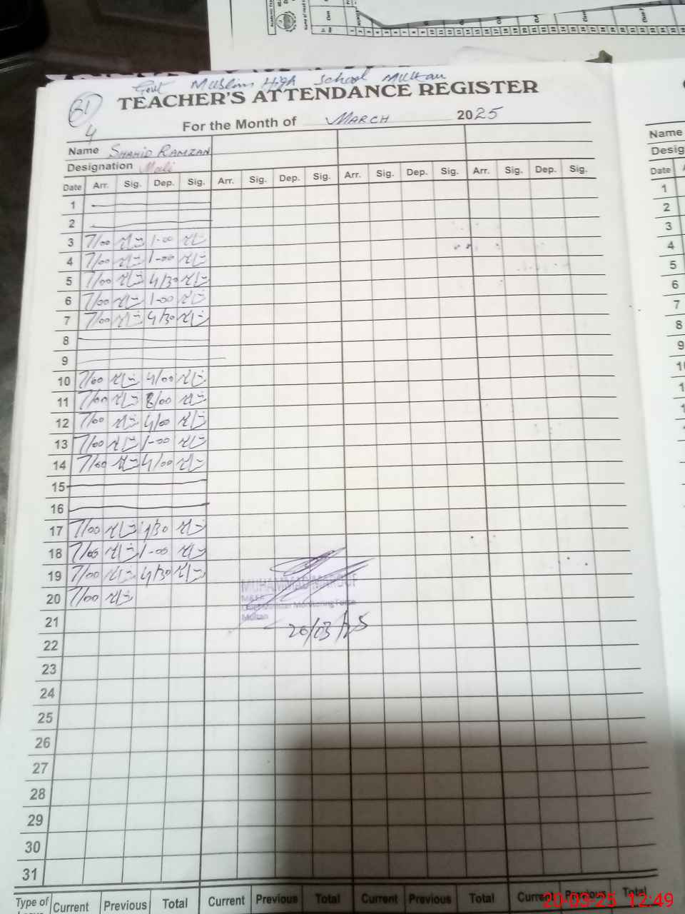 | Name: Mu**** As**** An**** Designation: (School Headmaster's/Headmistress's) Principal Phone/Cell Number: 03**** |