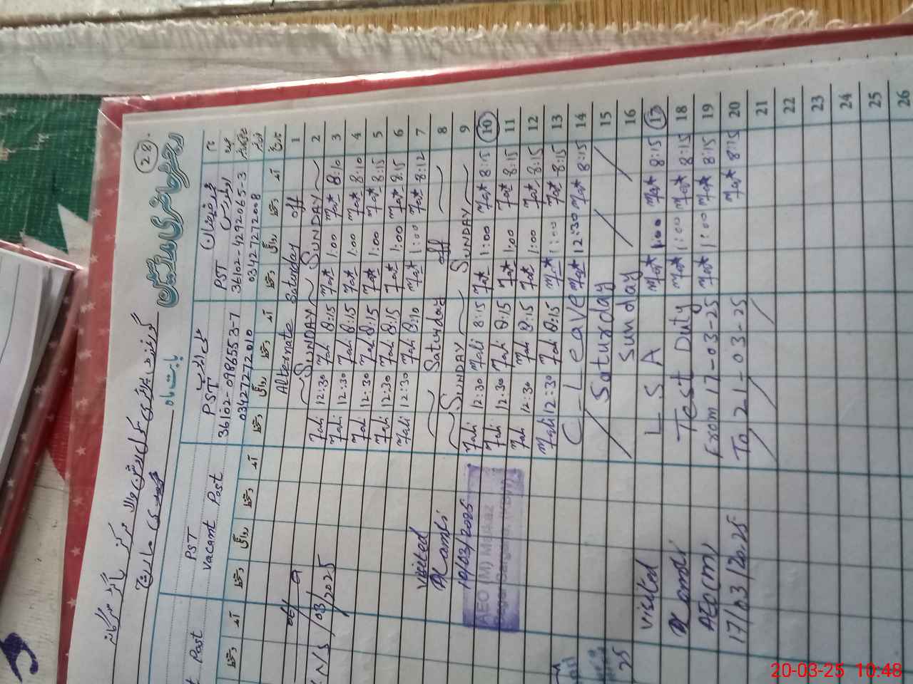 | 36**** | Al**** Ay**** | PST | Regular | 0 | 0 | 0 | 0 | 0 | 0 | 0 | 0 | 0 | Exam Duty |