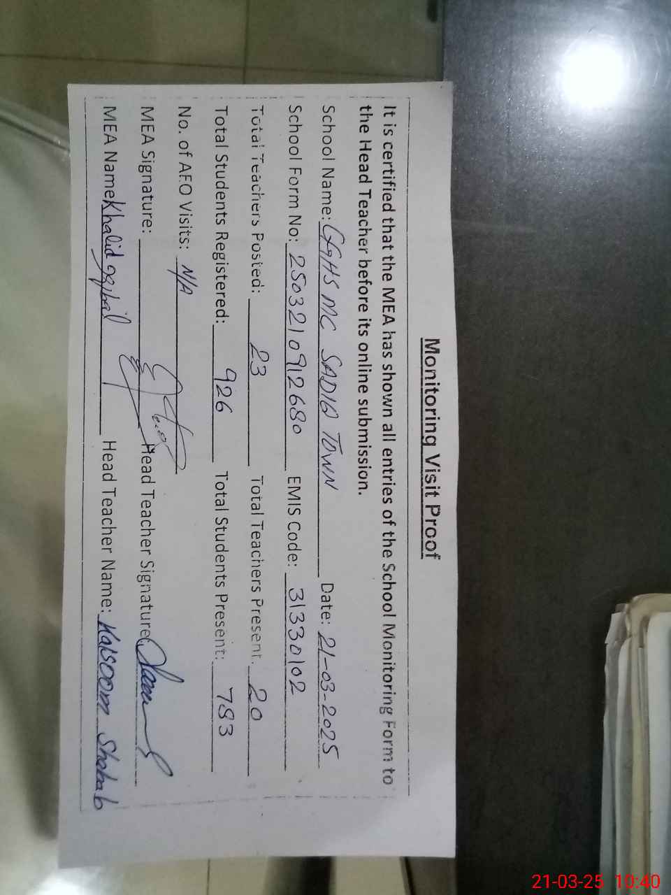 | EMIS Code: 31330102 | Name of School: GGHS MC SADIQ TOWN | |||