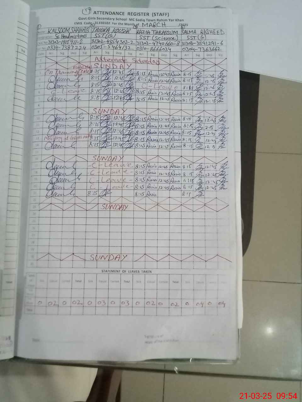 | 31**** | Ta**** Ak**** | PST | Regular | 2 | 0 | 0 | 0 | 0 | 0 | 0 | 0 | 2 | Casual |