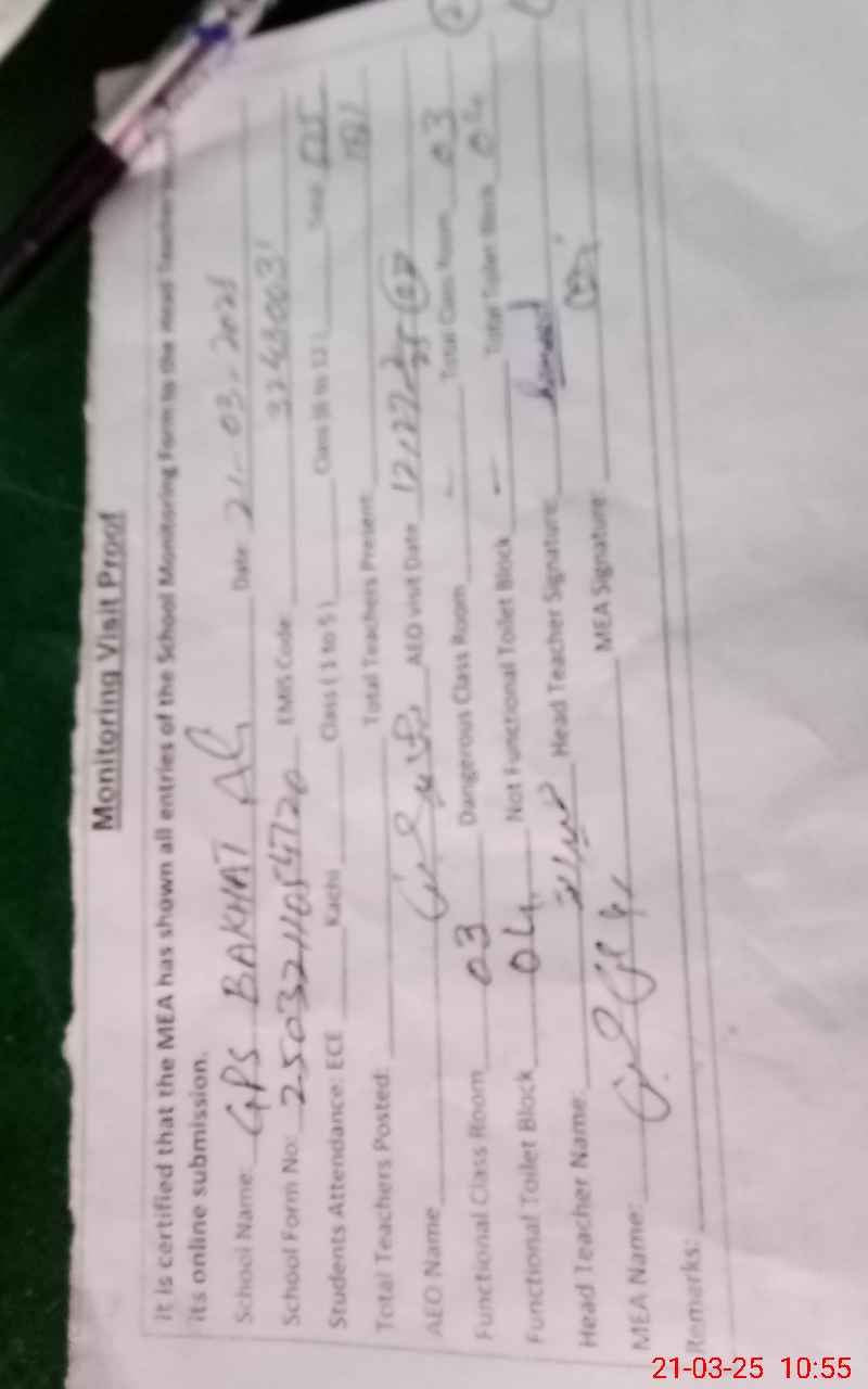 | EMIS Code: 32430031 | Name of School: GPS BAKHAT ALI | |||