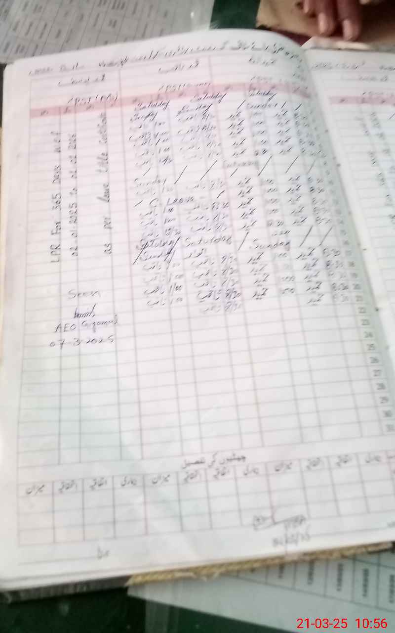 | CNIC | Full Name | Designation | R/C | Absence During Last Calender Month |