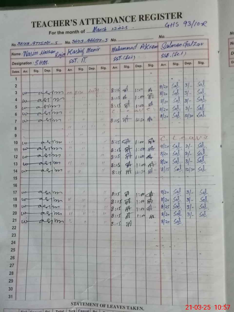 | 36**** | Ka**** Mu**** | SST | Regular | 0 | 0 | 0 | 0 | 0 | 0 | 0 | 0 | 0 | Exam Duty |