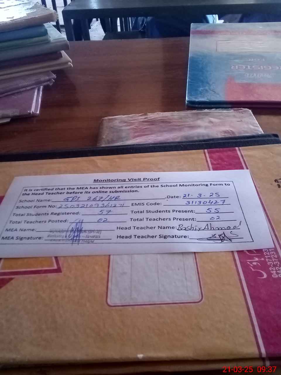 | EMIS Code: 31130427 | Name of School: GPS CHAK NO.267 HR DERA GHULAM MUHAMMAD | |||