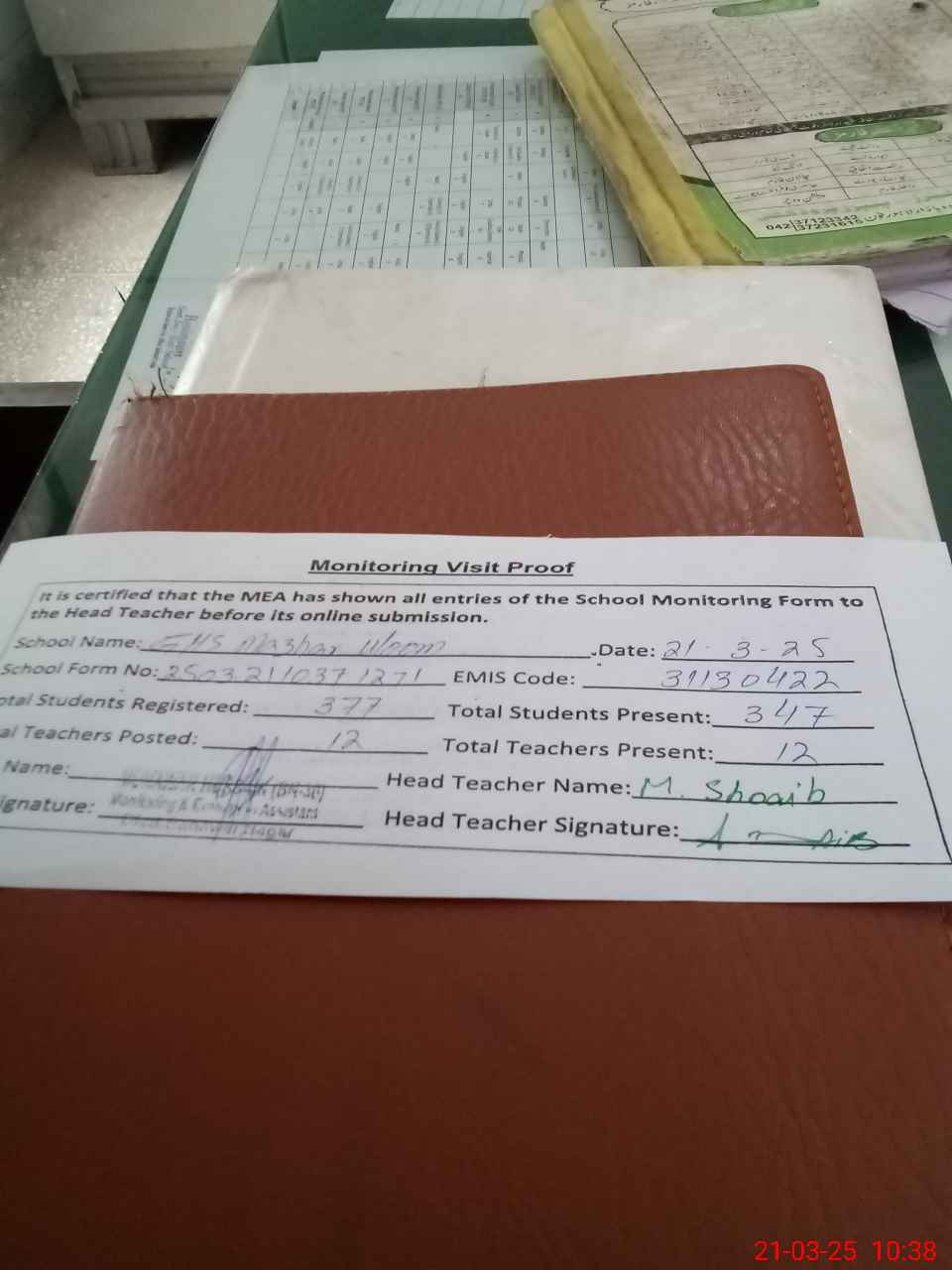 | Certified that this School was Inspected by the Undersigned MEA/DMO Today and the Information Stated Above is as Per Record. | |||||