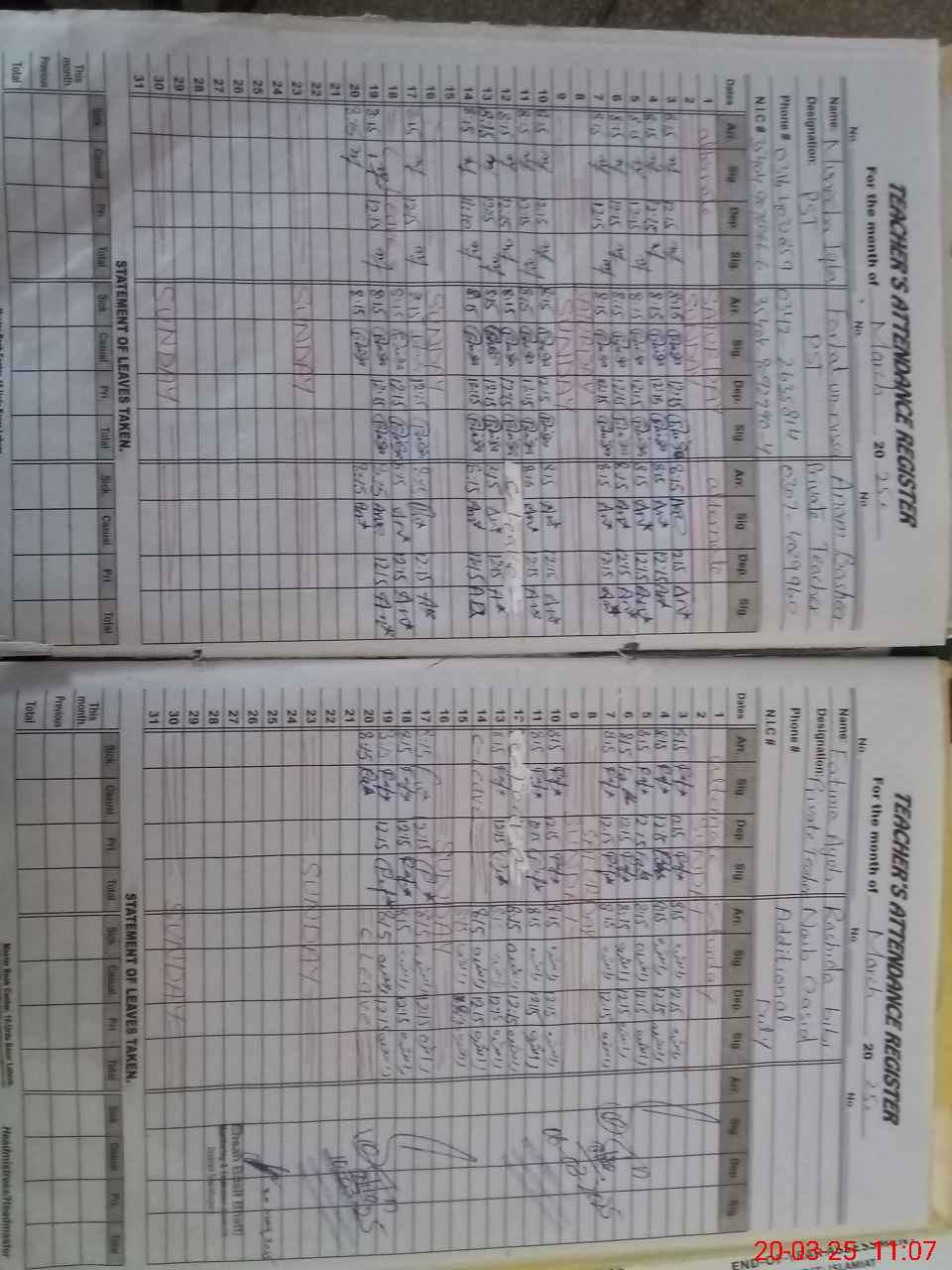 | Name: MU**** IQ**** Designation: (School Headmaster's/Headmistress's) PST Phone/Cell Number: 03**** |