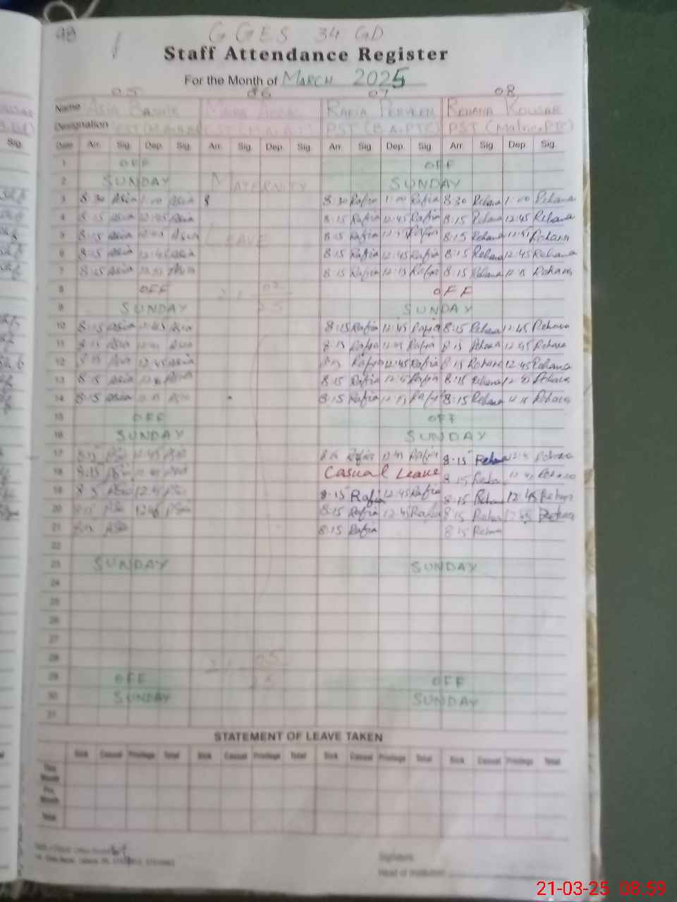 | 35**** | Fi**** Ab**** | PST | Regular | 28 | 0 | 0 | 28 | 0 | 0 | 0 | 0 | 0 | Maternity |