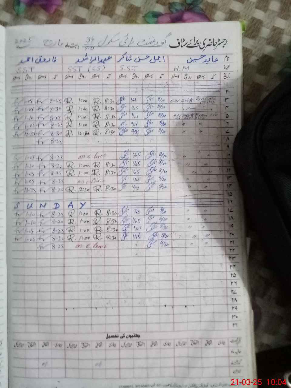 | 35**** | Ab**** Hu**** | 9 | 1 | 0 | 0 | 0 | 0 | 0 | 0 | 0 | 0 | 0 | Exam Duty |