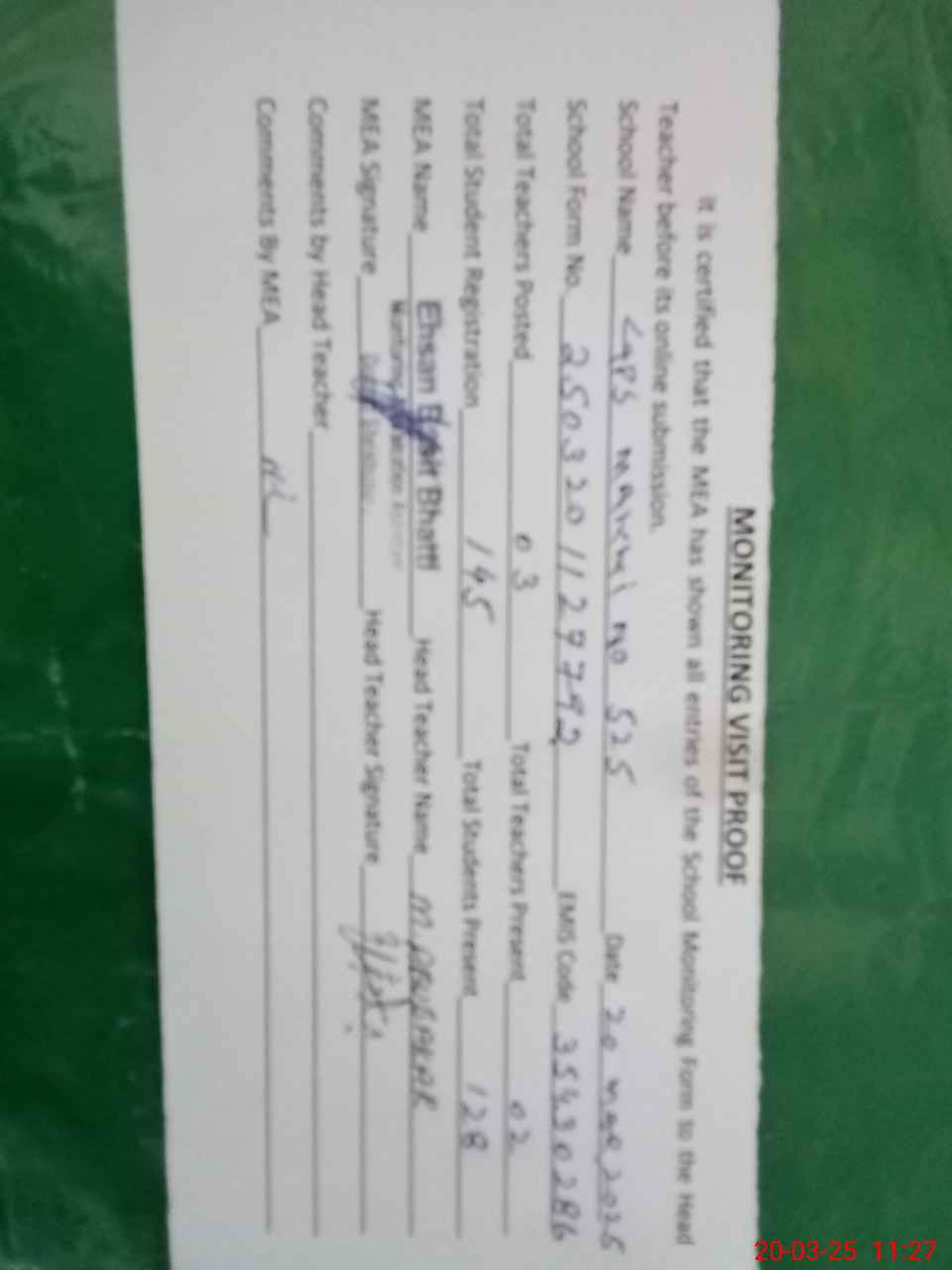 | EMIS Code: 35430286 | Name of School: GPS MAKKI NO. 525 | |||