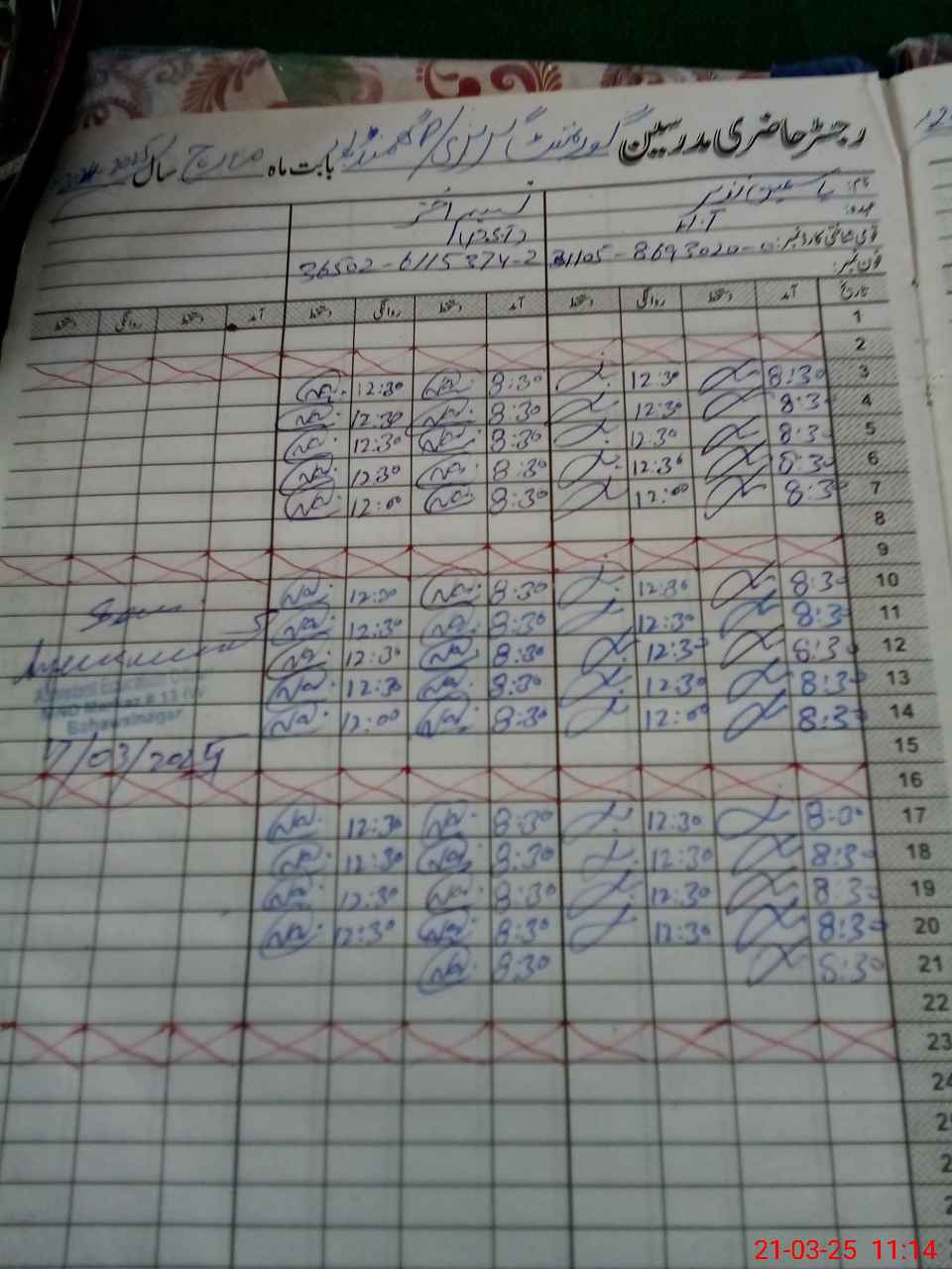 | CNIC | Full Name | Designation | R/C | Absence During Last Calender Month |