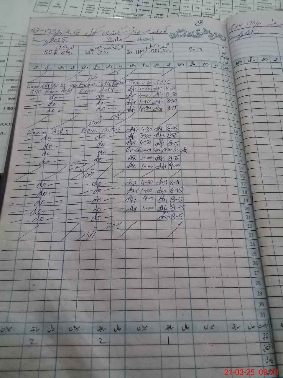 | 31**** | Kh**** Ha**** | Regular | 2 | 0 | 0 | 0 | 0 | 0 | 0 | 0 | 2 | Exam Duty | |