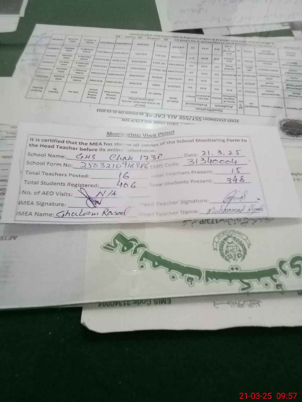 | EMIS Code: 31340004 | Name of School: GHS CHAK 173/P | |||