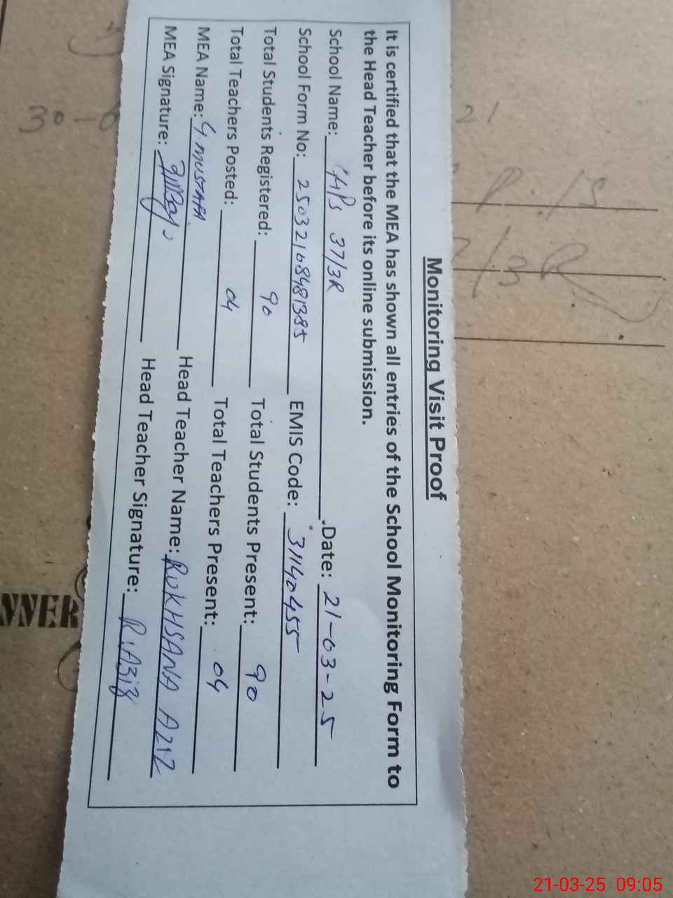 | EMIS Code: 31140455 | Name of School: GGPS CHAK NO. 37/3-R | |||