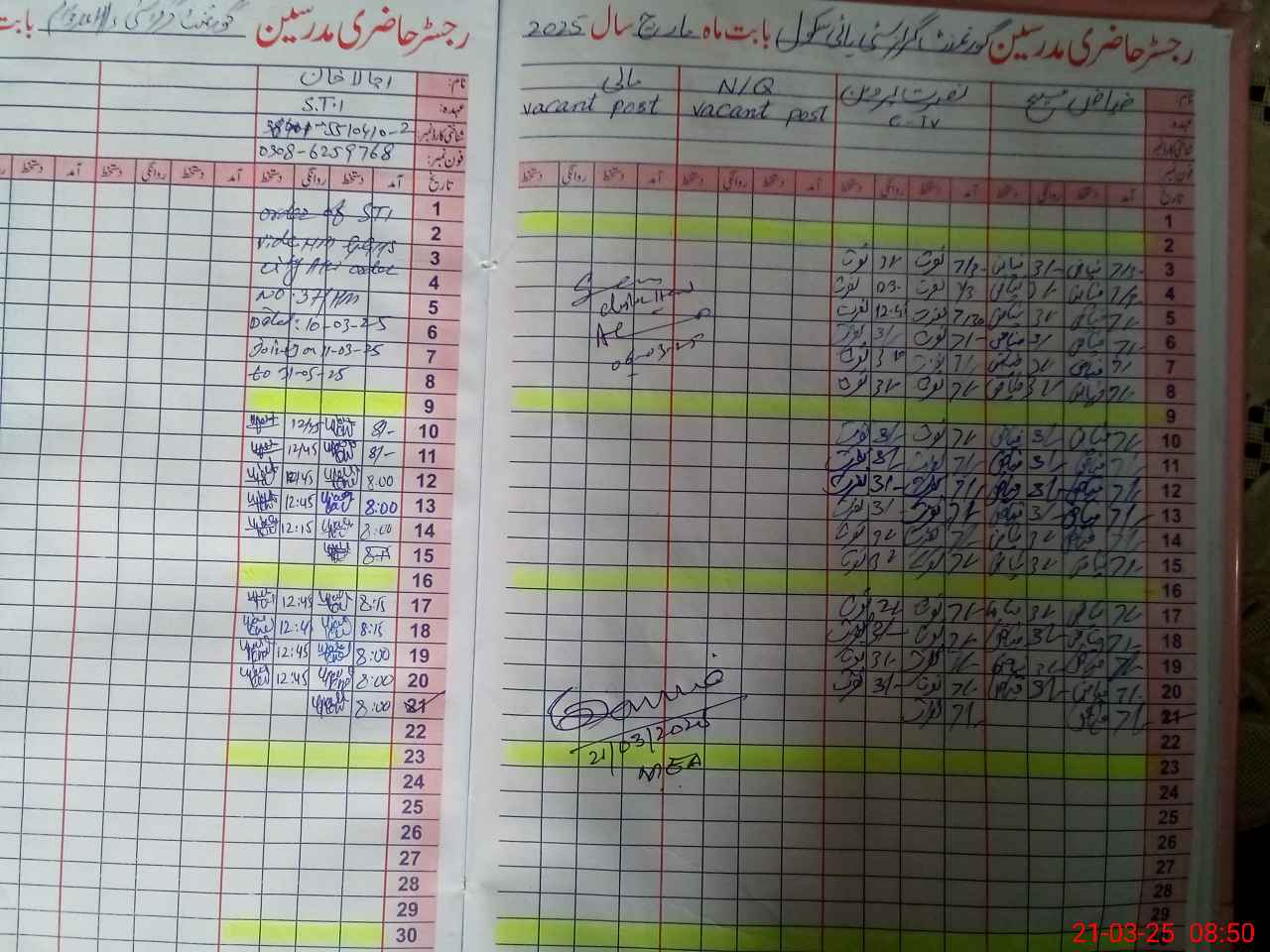 | Name: Sh**** yo**** Designation: (School Headmaster's/Headmistress's) SST( ARTS) Phone/Cell Number: 03**** |