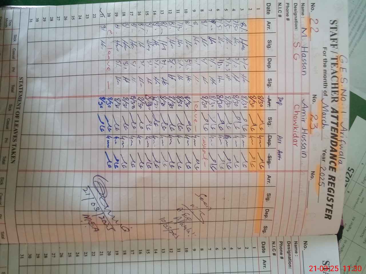 | Name: HA**** NA**** Designation: (School Headmaster's/Headmistress's) SST (GENERAL) Phone/Cell Number: 03**** |