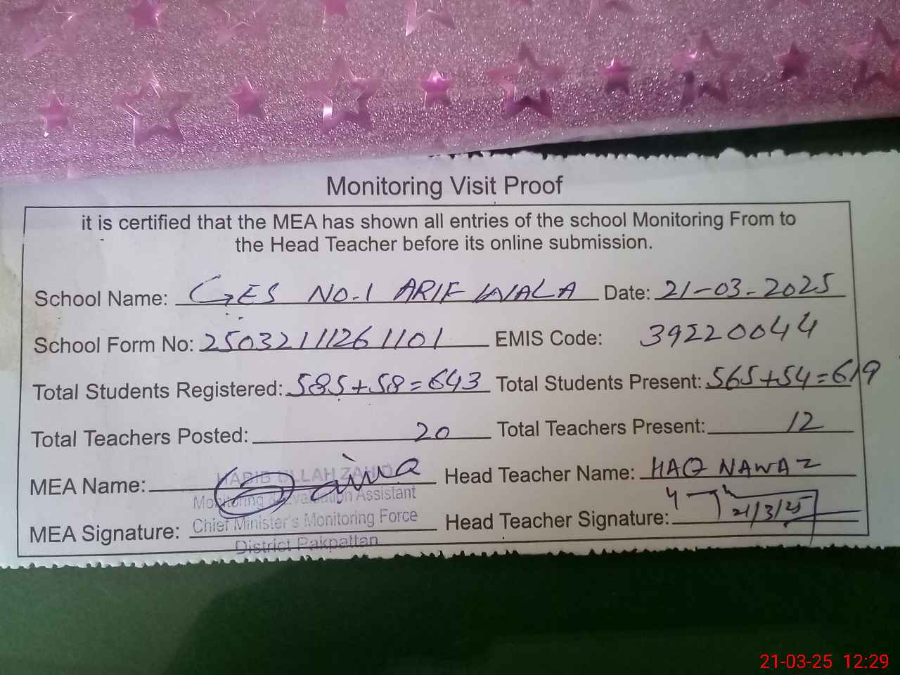 | EMIS Code: 39220044 | Name of School: GES NO. 1 ARIF WALA | |||