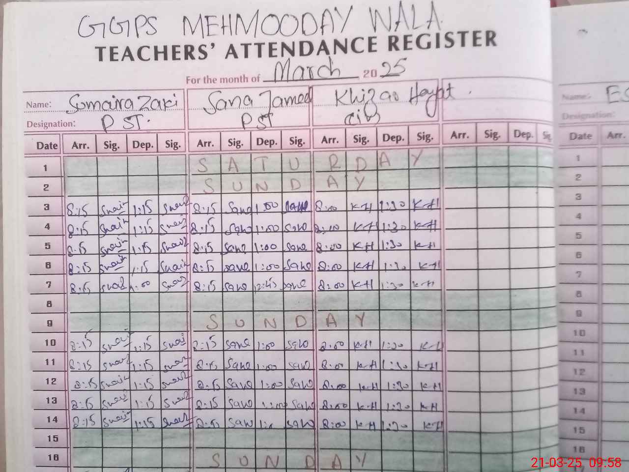 | Name: SU**** ZA**** Designation: (School Headmaster's/Headmistress's) PST Phone/Cell Number: 03**** |