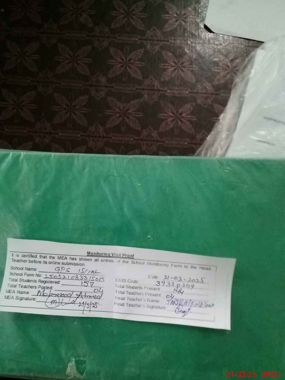 | EMIS Code: 39330249 | Name of School: GPS CHAK NO 15/1-AL | |||