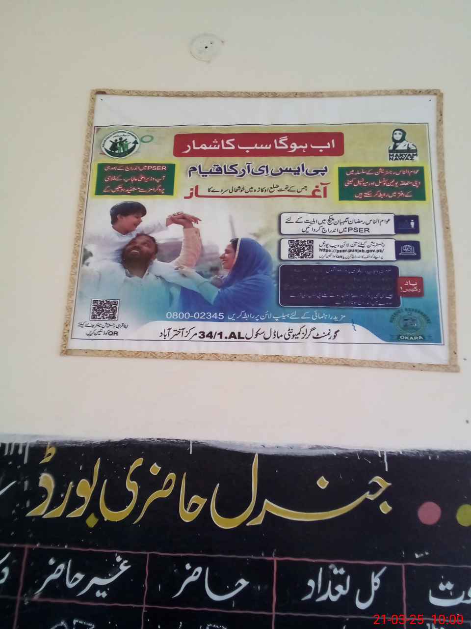 | District: OKARA | Tehsil: RENALA KHURD | Markaz: AKHTAR ABAD - FEMALE | Level: Primary | |