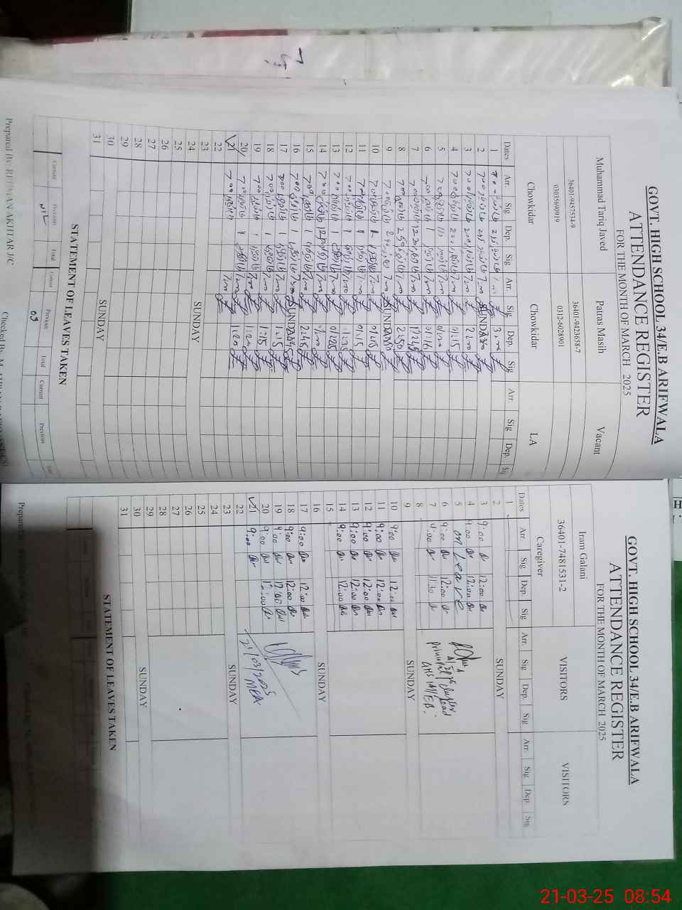 | 36**** | Wa**** As**** | Regular | 0 | 0 | 0 | 0 | 0 | 0 | 0 | 0 | 0 | Exam Duty | |