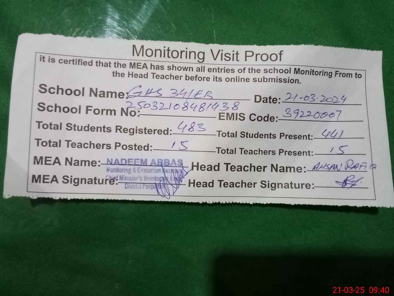 | EMIS Code: 39220007 | Name of School: GHS 34 EB ARIF WALA | |||