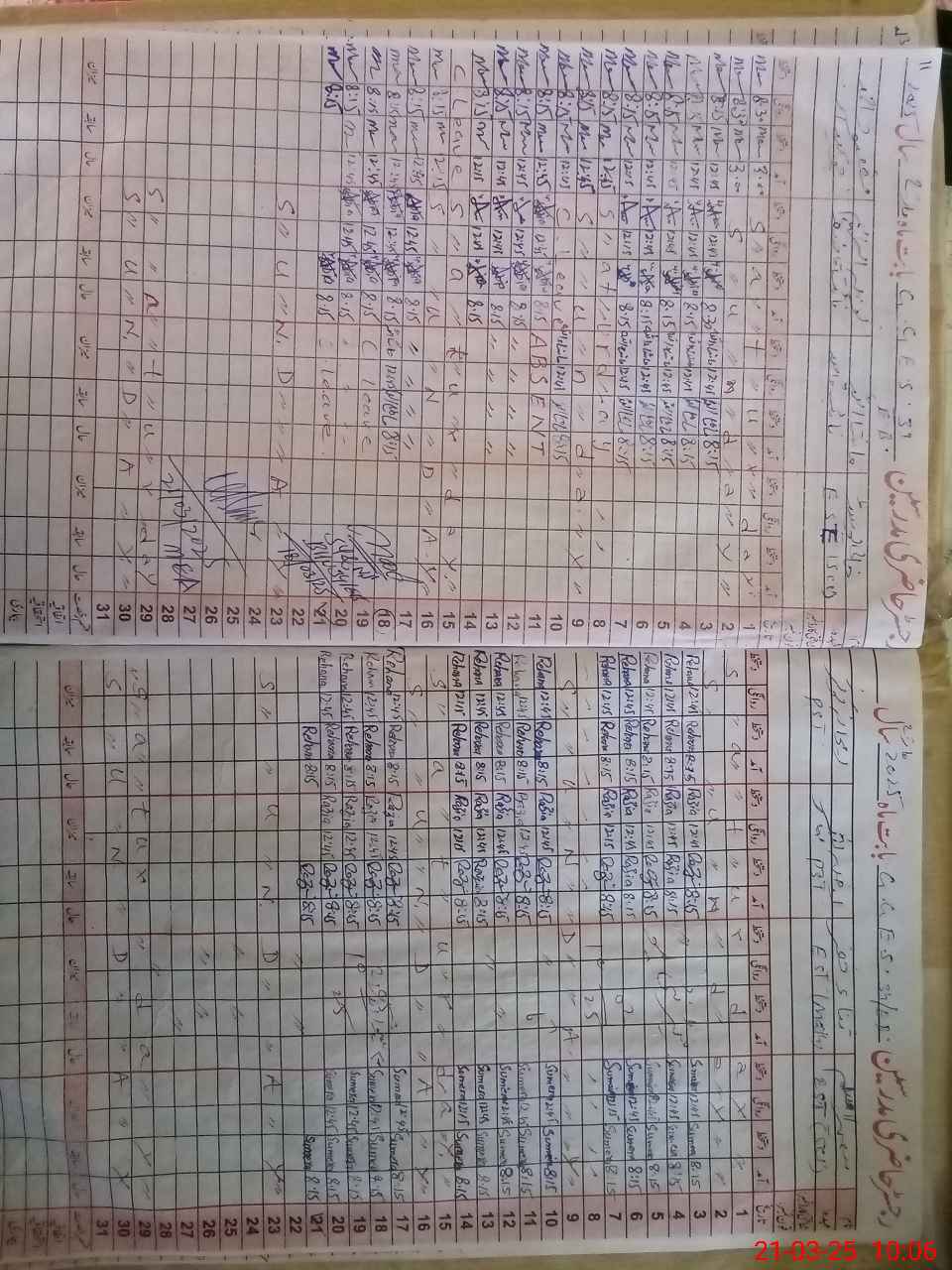 | CNIC | Full Name | Designation | R/C | Absence During Last Calender Month |