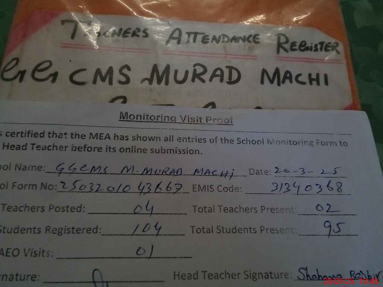 | EMIS Code: 31340368 | Name of School: GGCMS MUHAMMAD MURAD MACHI | |||