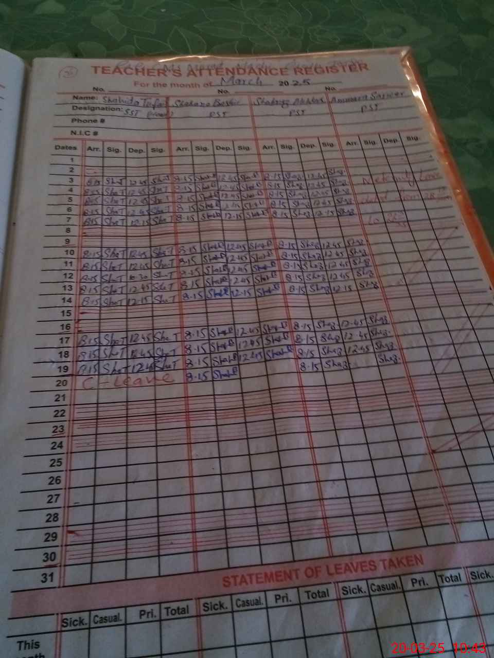 | Name: SH**** TU**** Designation: (School Headmaster's/Headmistress's) S.S.T.(SC) Phone/Cell Number: 03**** |