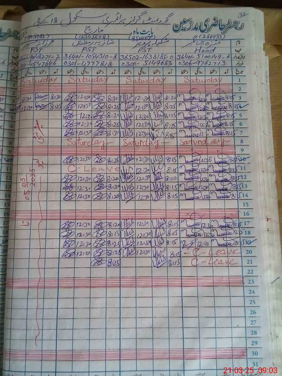 | Name: MU**** JA**** Designation: (School Headmaster's/Headmistress's) PST Phone/Cell Number: 03**** |