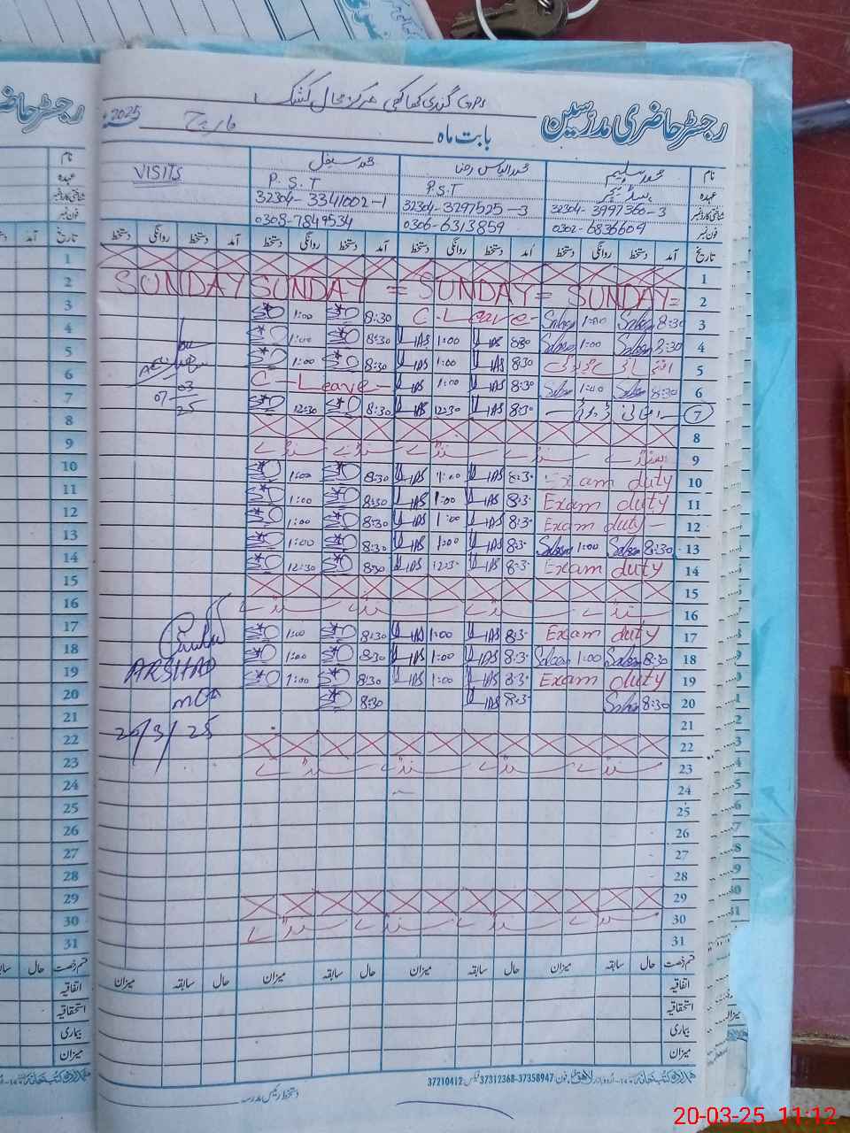 | Name: M.**** Designation: (School Headmaster's/Headmistress's) PST/PTC/JV Phone/Cell Number: 03**** |