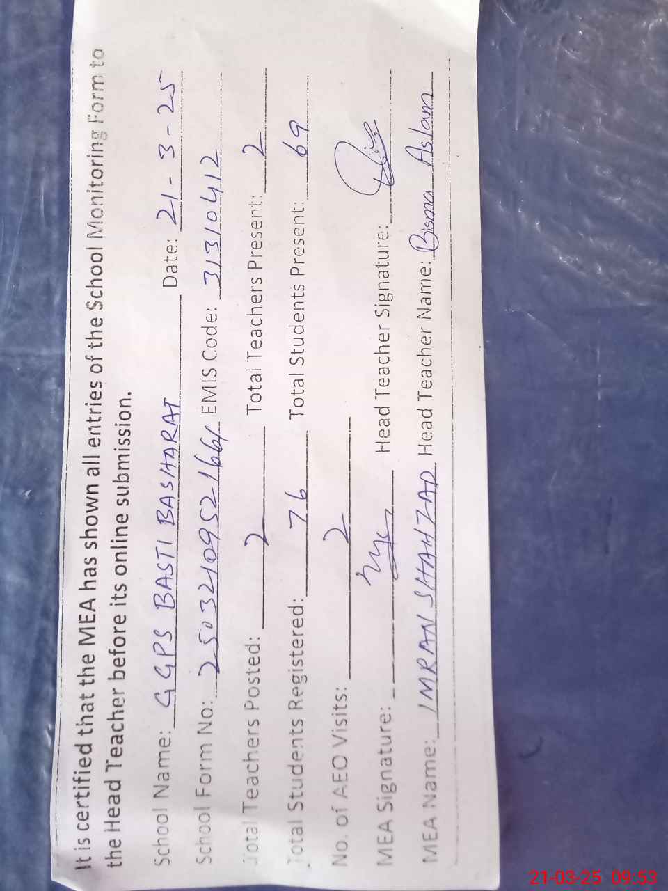 | EMIS Code: 31310412 | Name of School: GGPS BASTI BASHARAT | |||