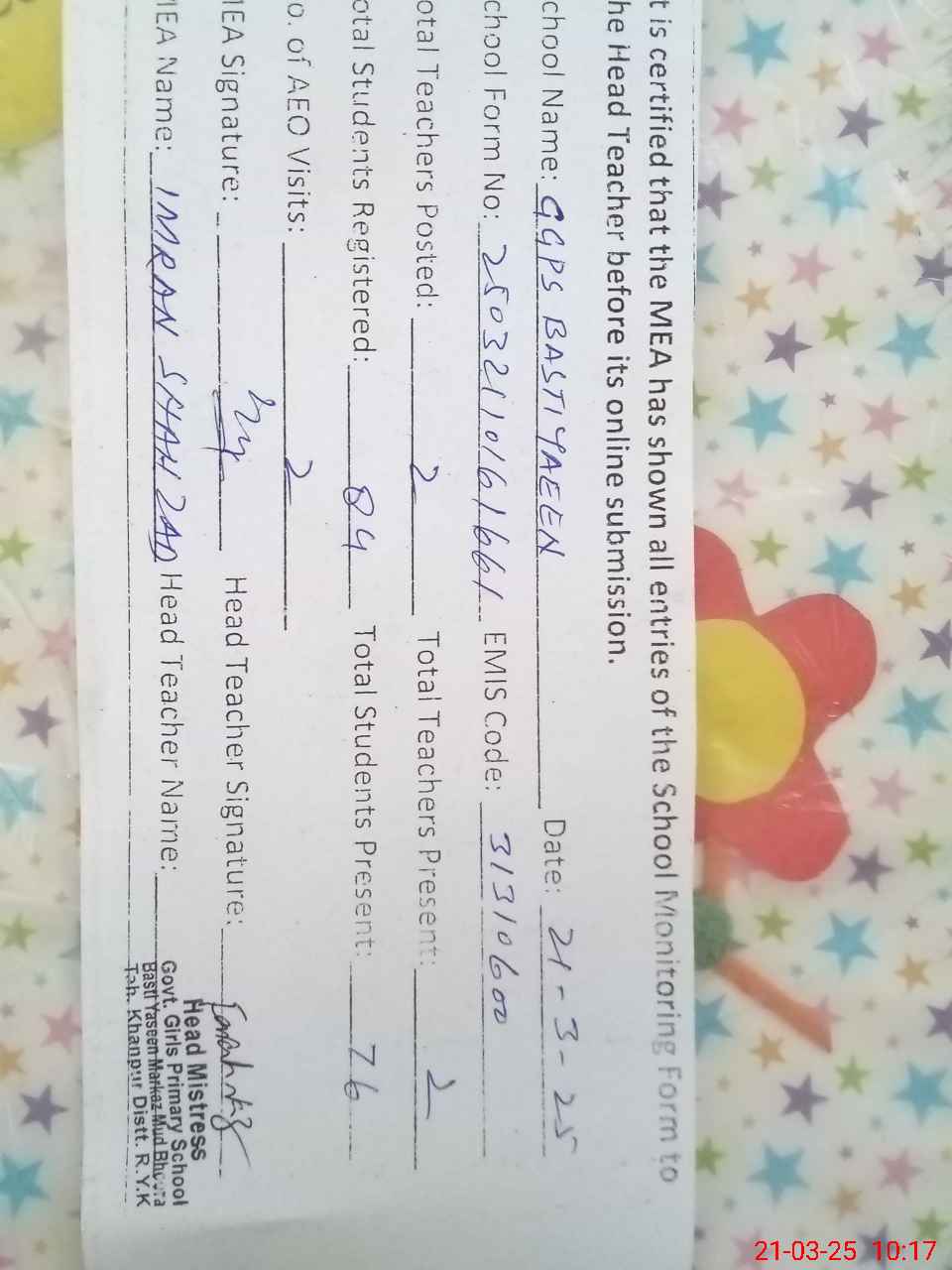 | EMIS Code: 31310600 | Name of School: GGPS BASTI YASEEN | |||