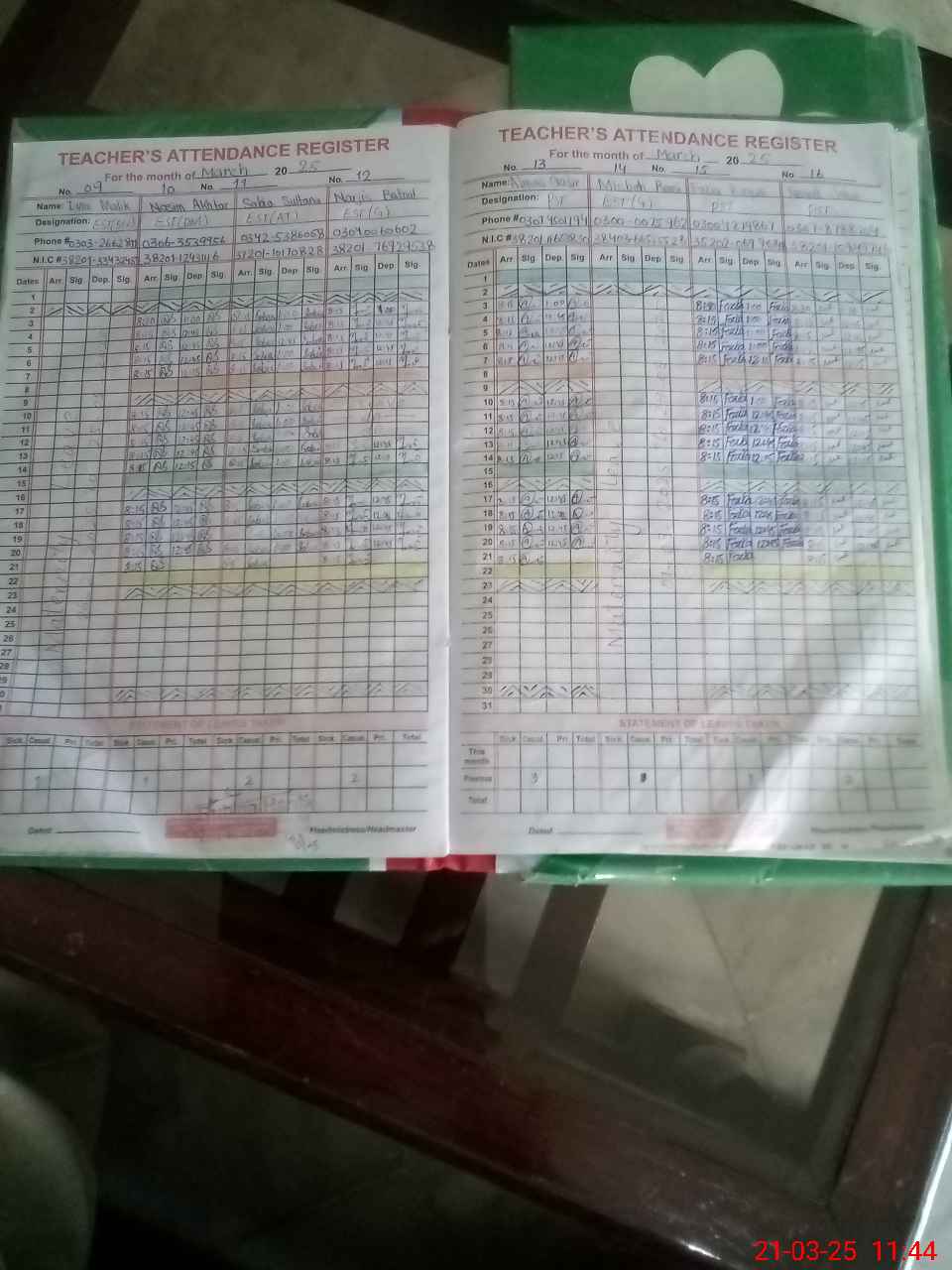 | CNIC | Full Name | Designation | R/C | Absence During Last Calender Month |
