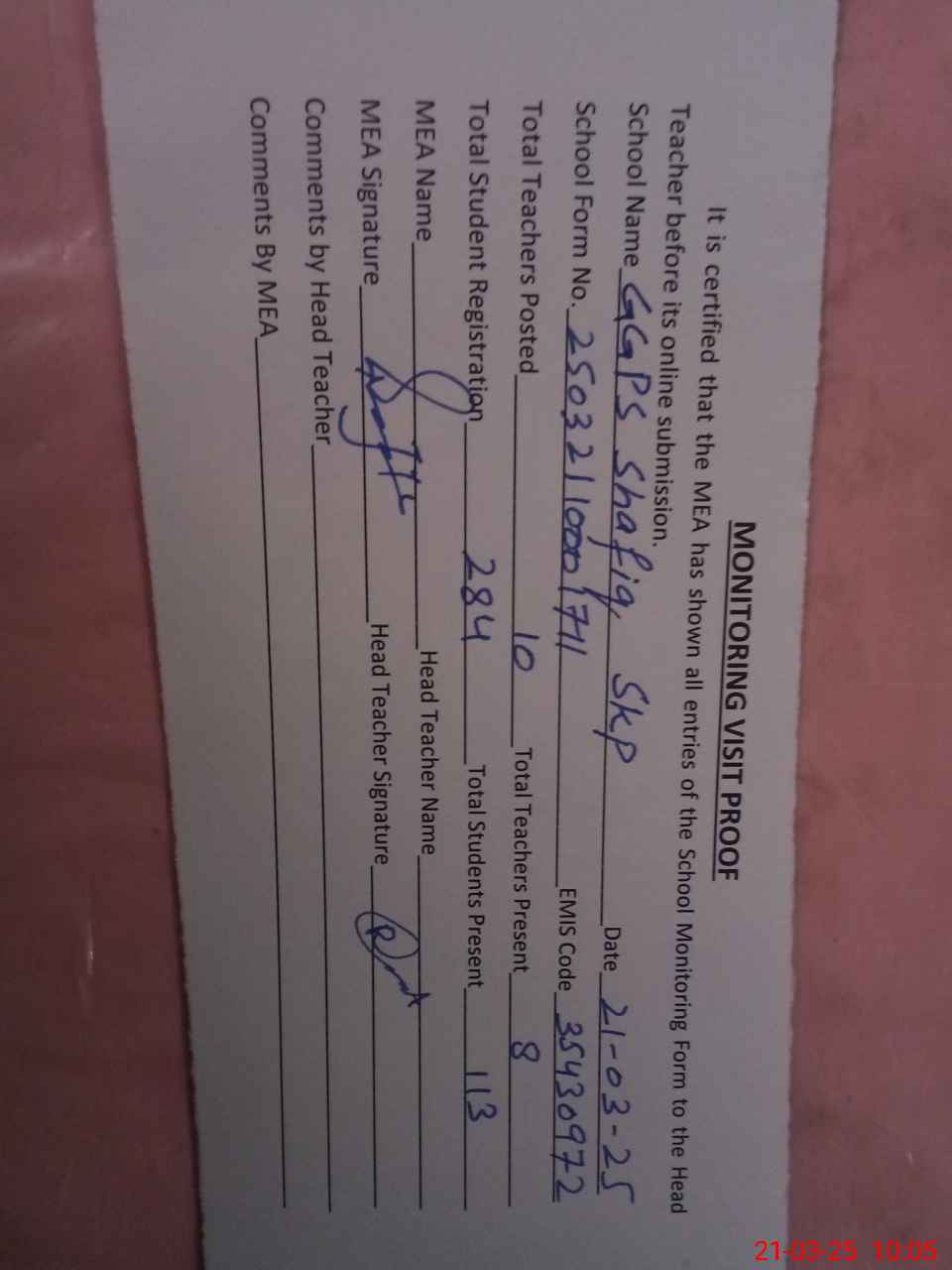 | EMIS Code: 35430972 | Name of School: GGPS SHAFIQ JANDIALA ROAD MUHAMMAD PURA | |||