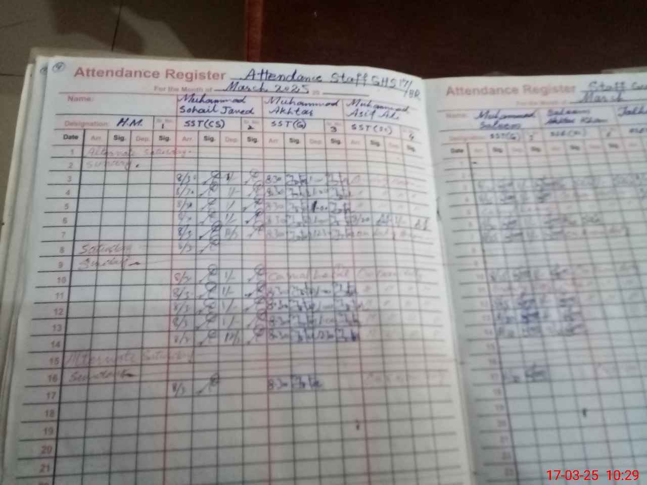 | 36**** | Mu**** Sa**** | 1 | 2 | 0 | 0 | 0 | 0 | 0 | 0 | 0 | 2 | Exam Duty | |