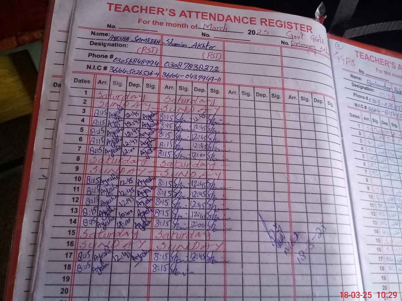 | Name: Ay**** Sa**** Designation: (School Headmaster's/Headmistress's) PST/PTC/JV Phone/Cell Number: 03**** |