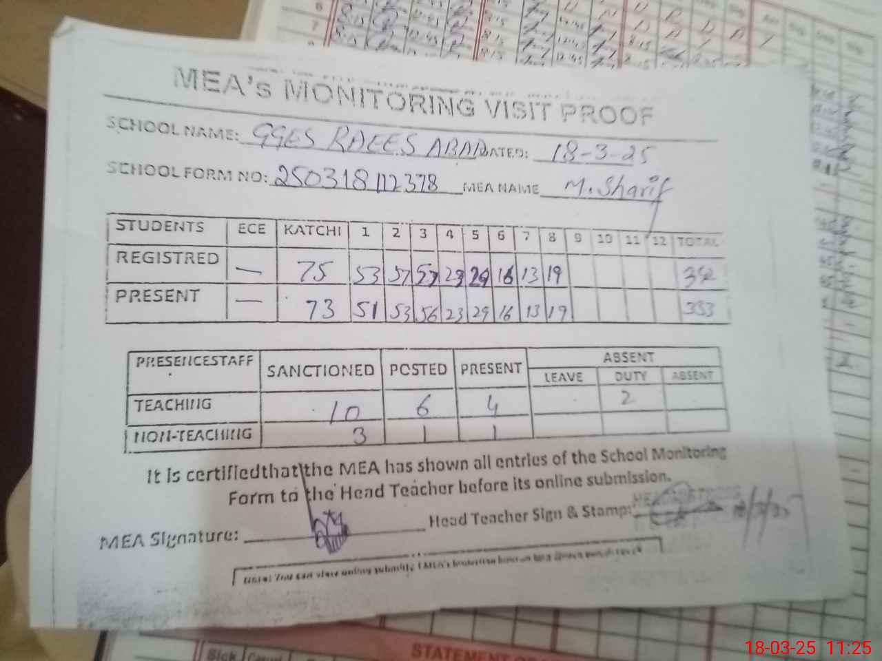 | EMIS Code: 36430112 | Name of School: GGES RAEES ABAD, TULAMBA | |||