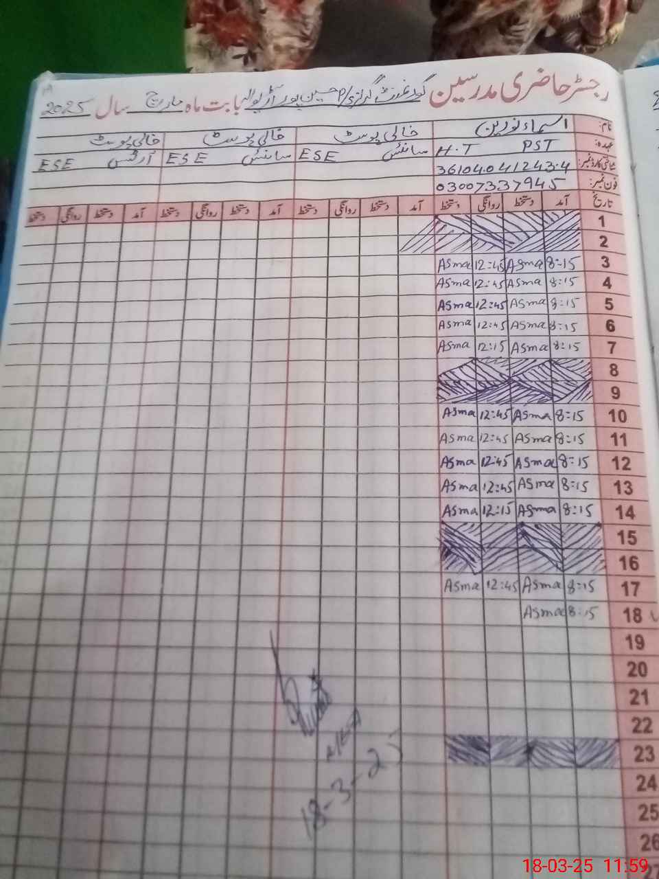 | Name: As**** No**** Designation: (School Headmaster's/Headmistress's) PST Phone/Cell Number: 03**** |