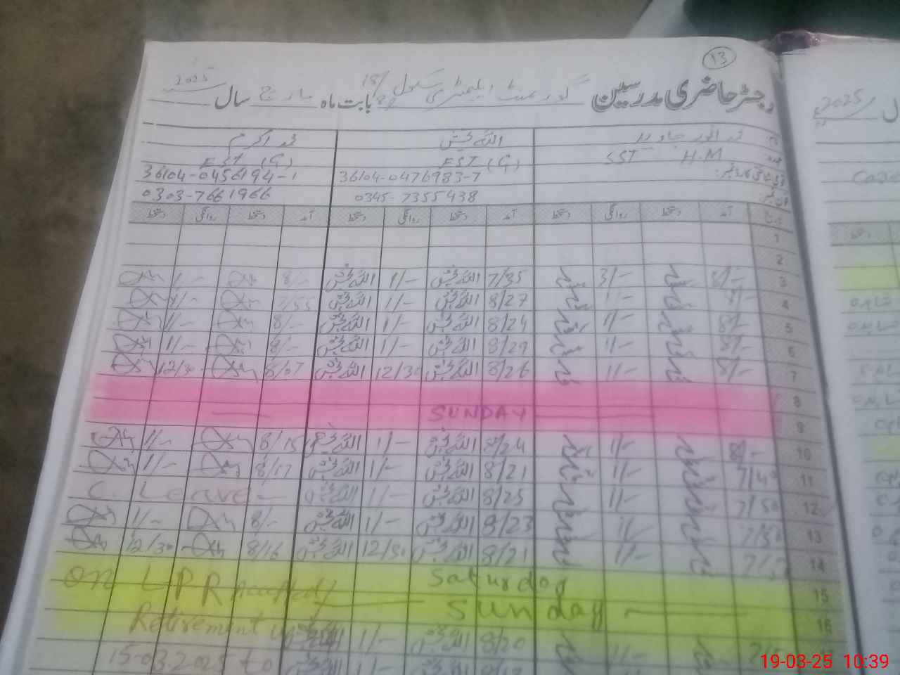 | CNIC | Full Name | Designation | R/C | Absence During Last Calender Month |
