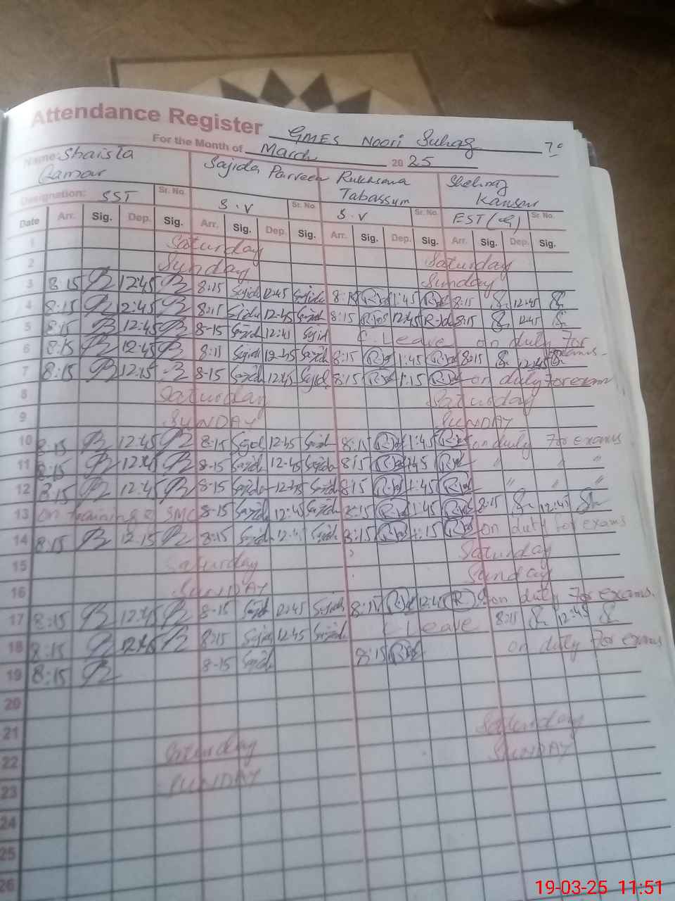 | 36**** | Sh**** Ka**** | Regular | 2 | 0 | 0 | 0 | 0 | 0 | 0 | 0 | 2 | Exam Duty | |